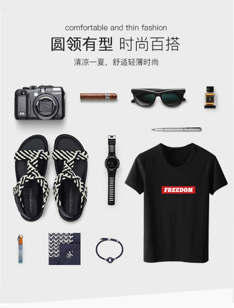 【100%純棉】2021春季爆款t恤男士韓版潮流字母印花短袖圓領(lǐng)T恤男