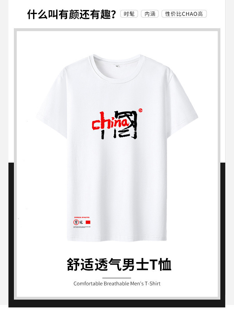 【"中國"印花】夏季新款港風圓領短袖時尚純棉男式T恤