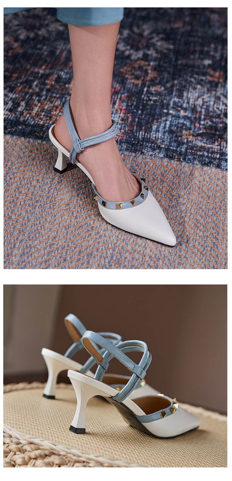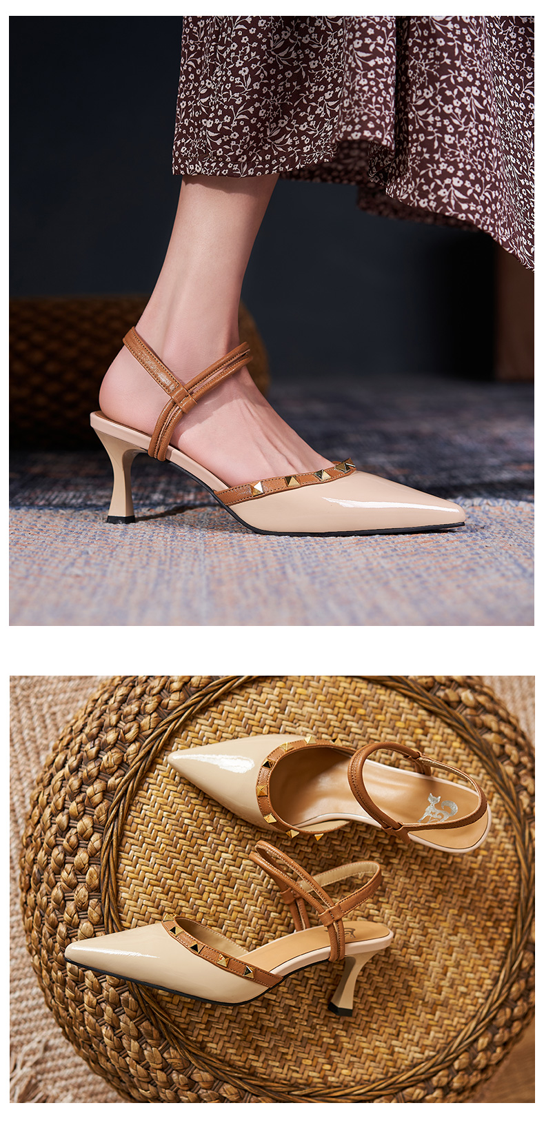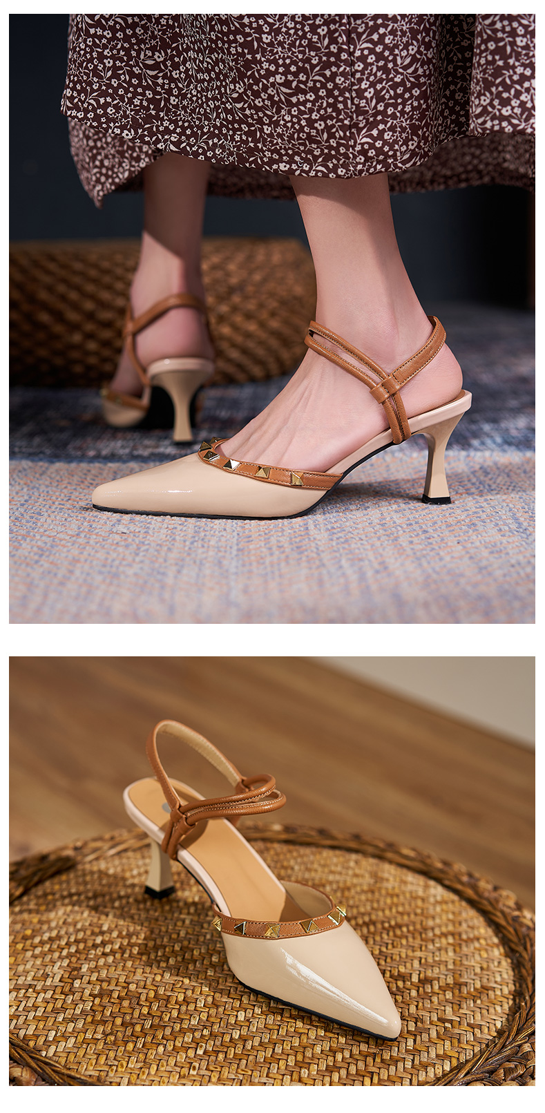 包頭涼鞋女2021新款鞋子女夏季高跟鞋后空一字帶細跟真皮時裝涼鞋