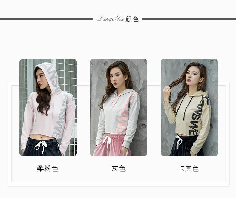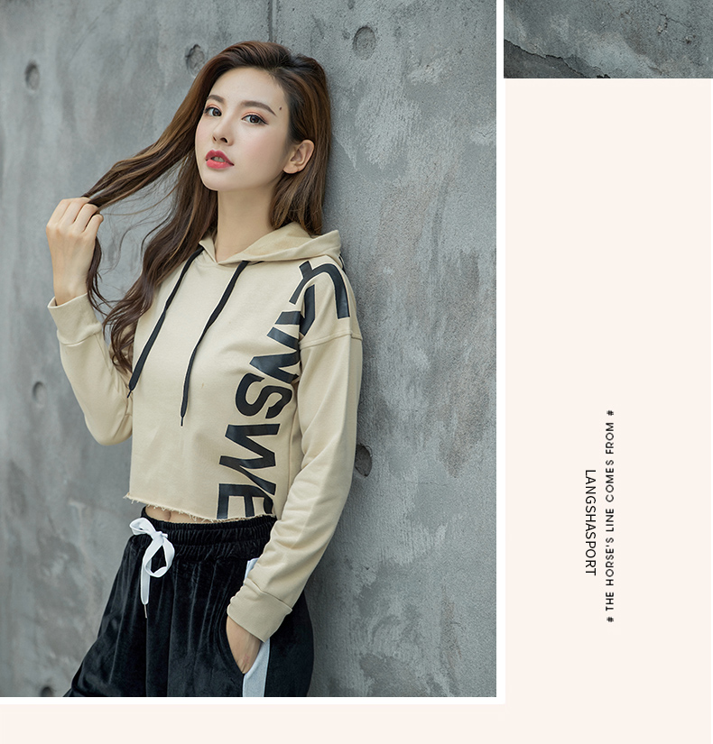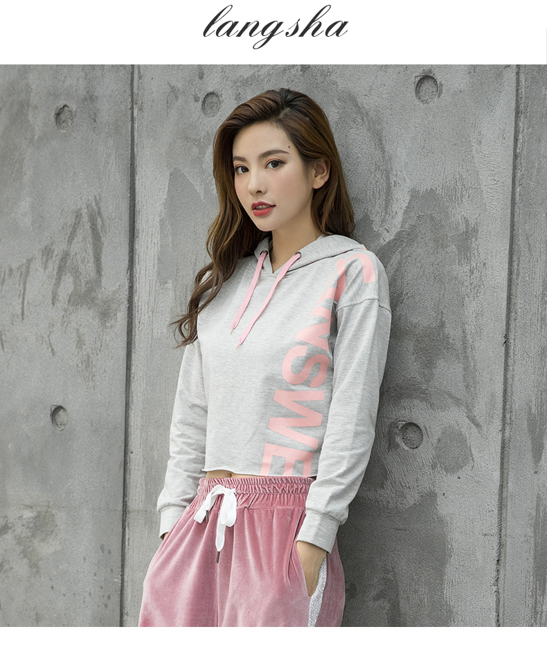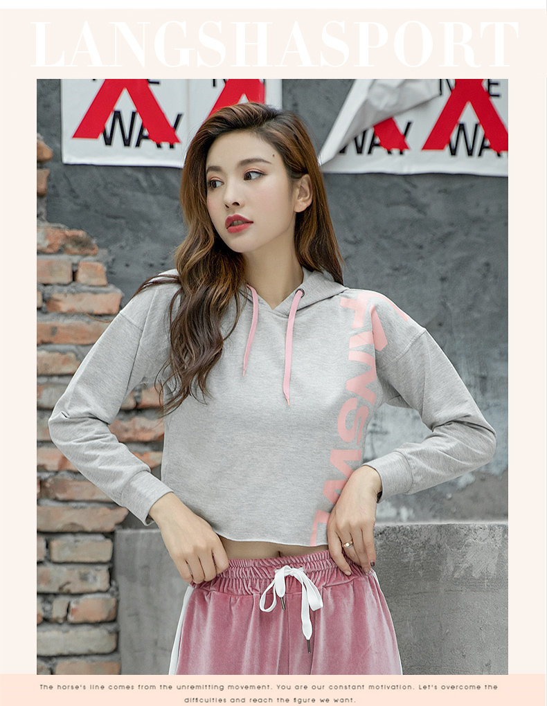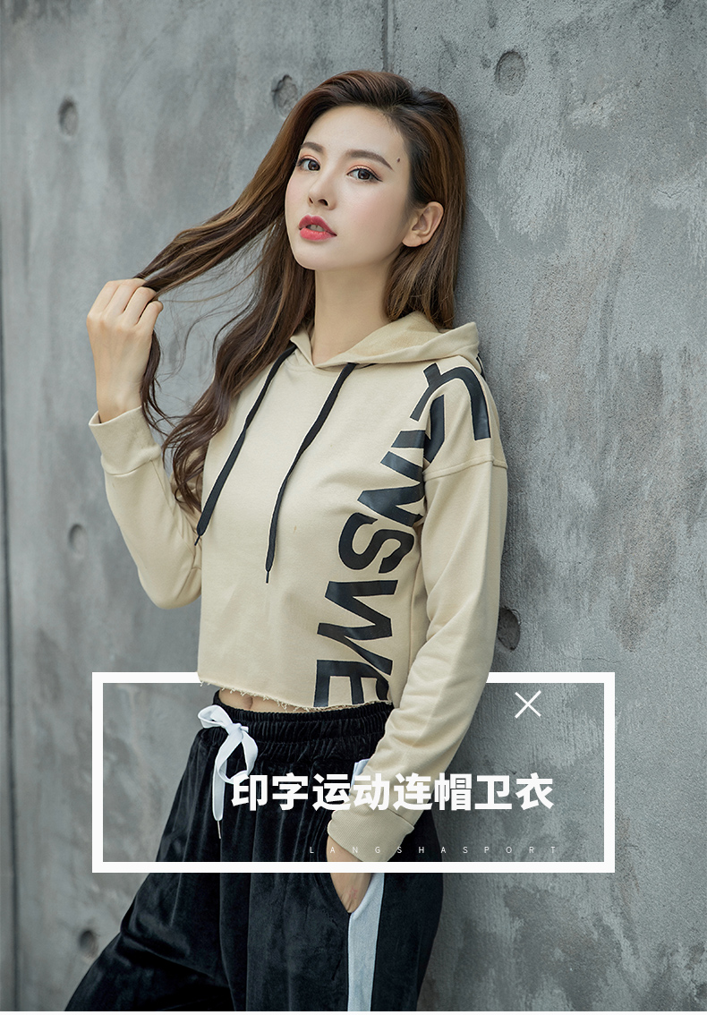 特價浪莎運動衛(wèi)衣女寬松連帽休閑純棉套頭衫春秋瑜伽服健身長袖
