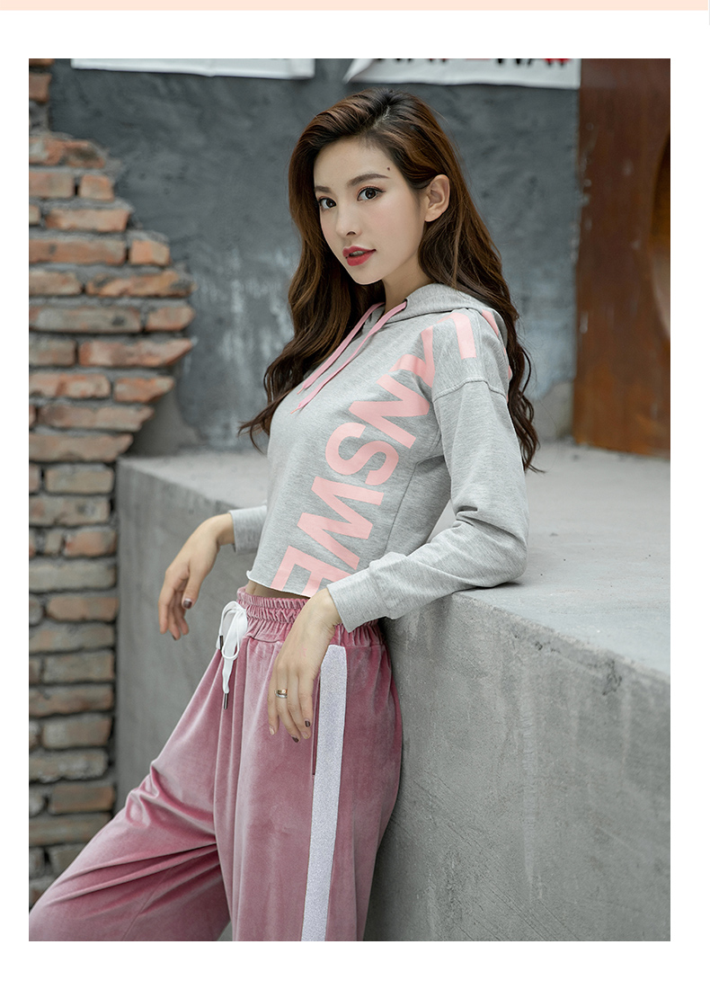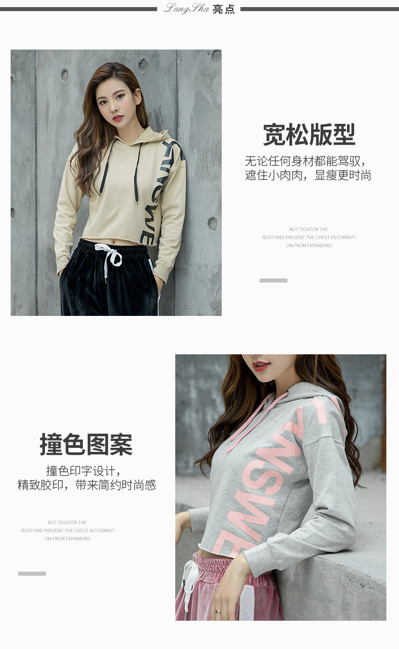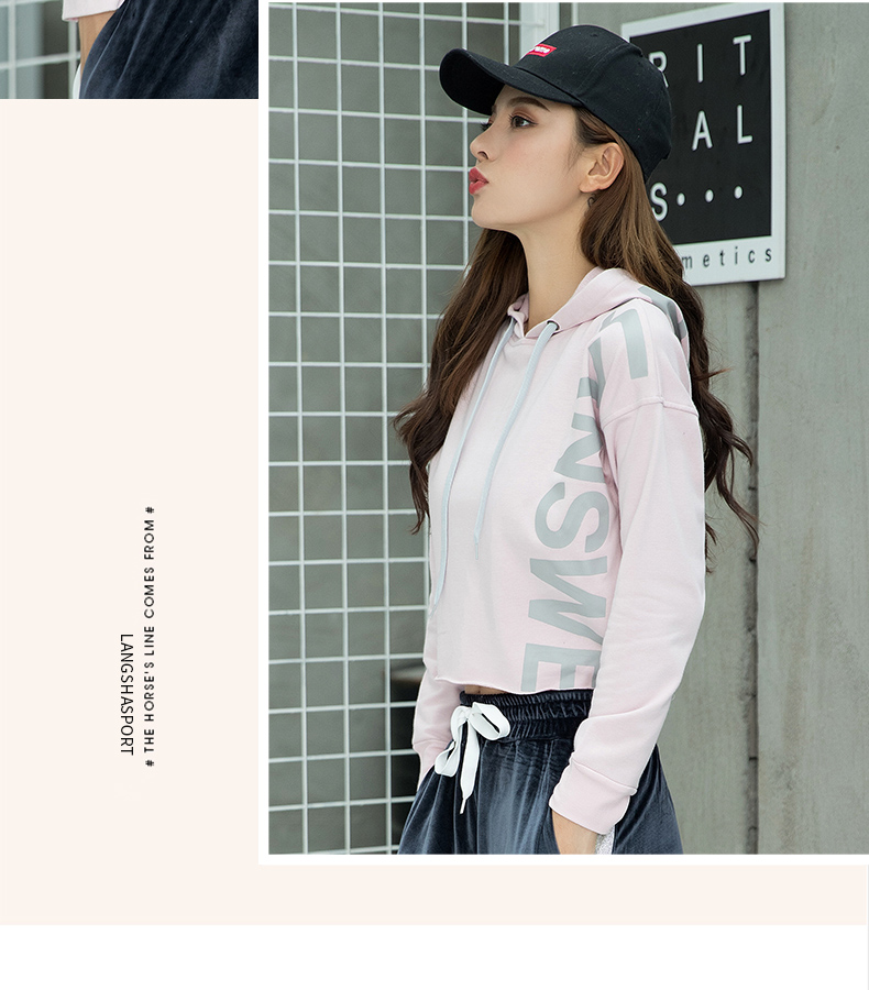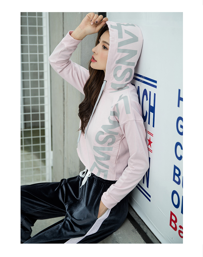 特價浪莎運動衛(wèi)衣女寬松連帽休閑純棉套頭衫春秋瑜伽服健身長袖