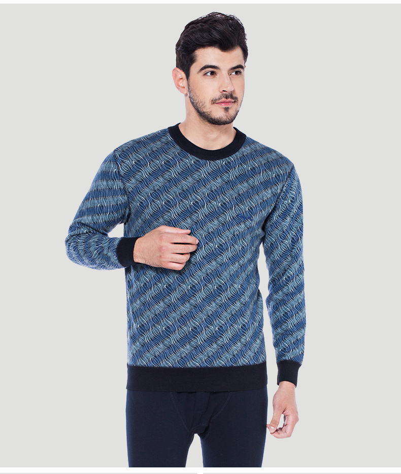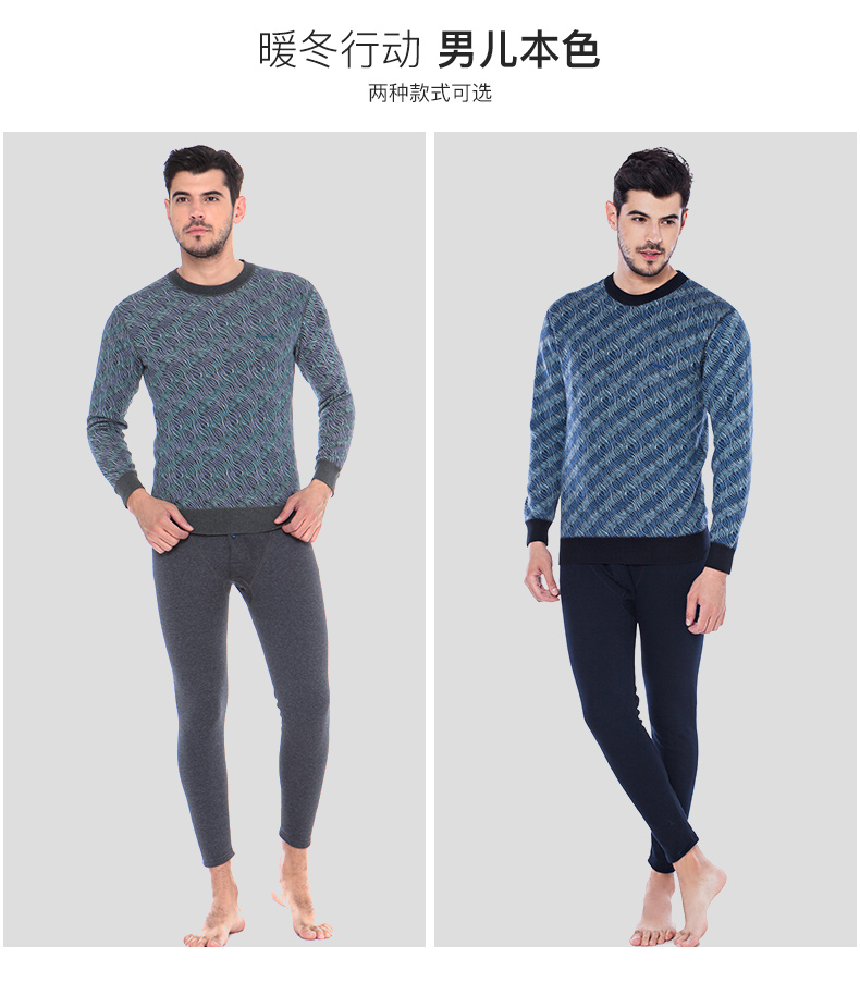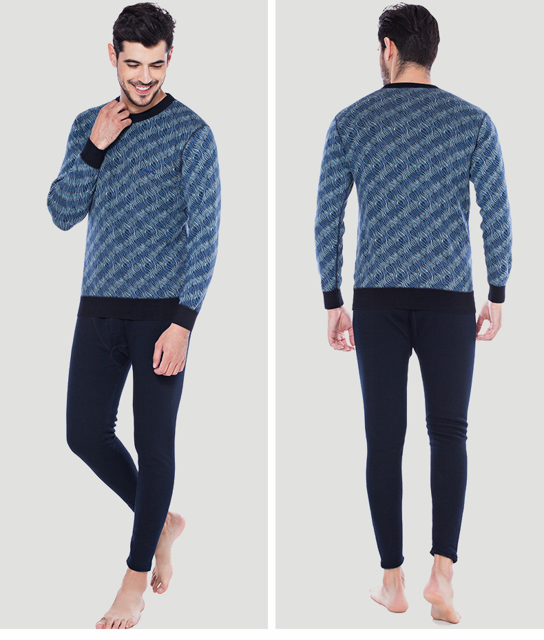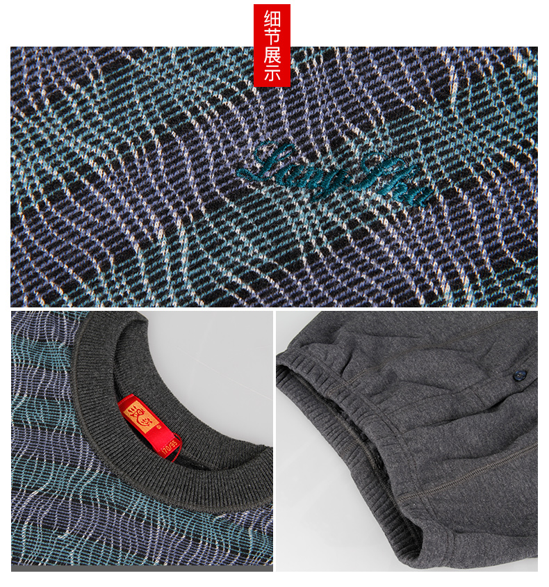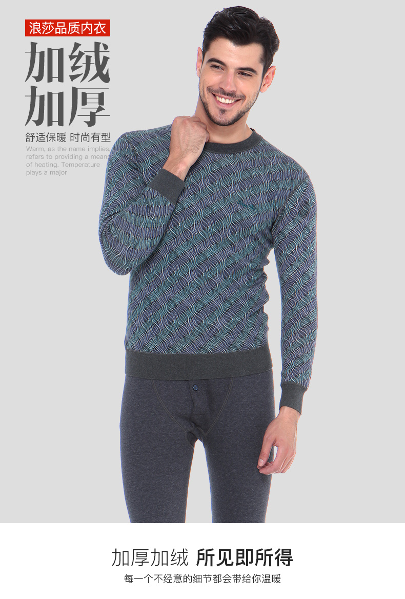 浪莎條紋個性保暖內衣男士加厚加絨中老年人爸爸冬季秋衣秋褲套裝